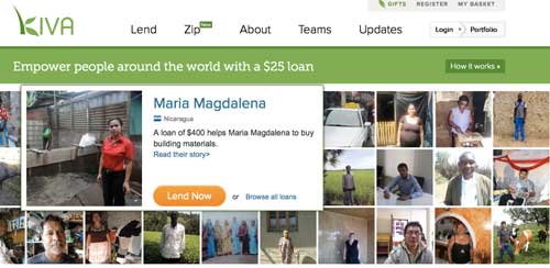 3- Kiva.org es una organización que permite prestar dinero a pequeñas empresas o emprendedores de países en vías de desarrollo a través de Internet. Es una manera alternativa de conseguir un microcréditos evitando intermediarios.