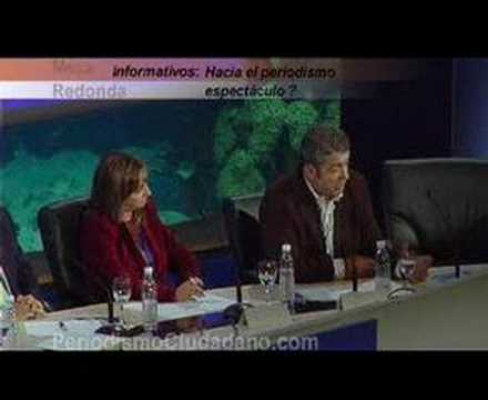 Mesa redonda: “Informativos: ¿Hacia el periodismo espectáculo?”. Intervienen: Vicente Vallés, Tele5; Pepa Bueno; TVE, Javier García de la Vega Antena 3.