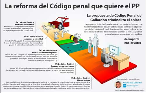 Puedes echarle un vistazo al esquema de David Bravo, abogado especializado en derecho informático y propiedad intelectual, @Dbravo, en el que ilustra la desproporción de esta Reforma del Código Penal.