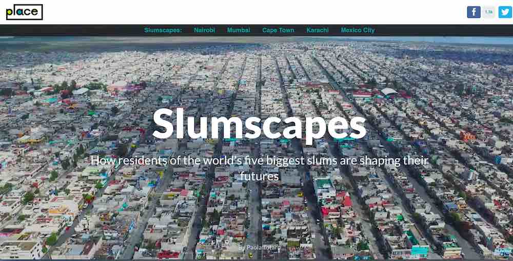 Este proyecto nacido de la colaboración entre la Thomson Reuters Foundation, (@TR_Foundation) y Code for Africa, (@Code4Africa), explora la vida y necesidades de 5 barrios marginales o slums alrededor del mundo: Kibera en Nairobi, Ciudad Neza en Ciudad de México, el distrito de Dharavi en Bombay,  la ciudad de Orangi en Karachi y Khayelista en Ciudad de Cabo, (en inglés Cape Town), la segunda ciudad más poblada de Sudáfica.
