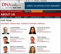 Si la meta de una redacción hiperlocal es conectar con la comunidad, ésta necesita saber con quién se está conectando. Un buen «Contáctenos» debe incluir los nombres y las fotos de los miembros del equipo e información como las direcciones de correo electrónico y los perfiles sociales.